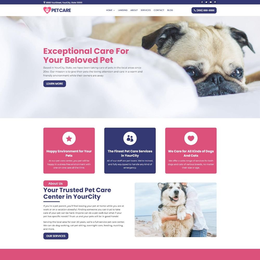 A conversion-focused Pet Care website layout